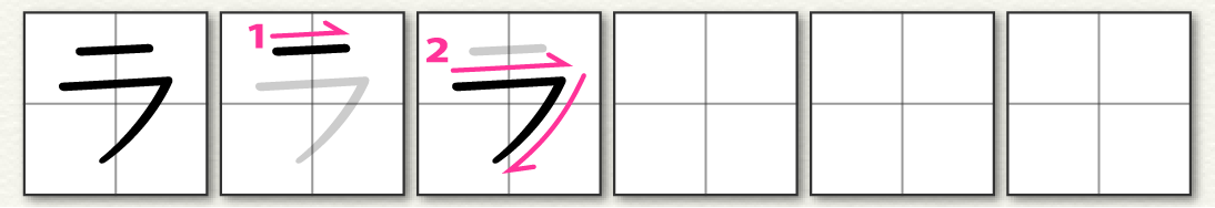 [1] and [2] start about the same Y-axis height. [2] is slightly curved. The shape is almost the same as Hiragana り. |