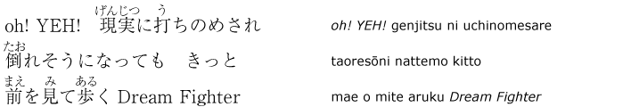 Oh! yeh! Even when being knocked out by harsh realities and nearly fall down, we just look straight ahead and walk on - the dream fighters.
